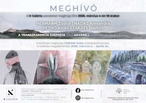 Hermann Zsófia, Nádas Alexandra, Pethő Anikó és Takáts Márton festőművészek: A transzparencia szépsége – az akvarell című kiállítás március 04-én szerdán 18 órakor nyílik a K Galériában, az V. kerületi Magyar utca 44-ben, a Kálvin tér közelében.