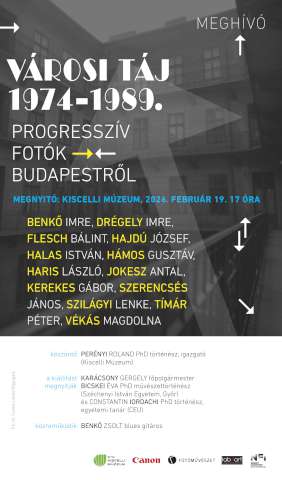 Városi táj – 1974?1989. Progresszív fotók Budapestről címmel kiállítás nyílt 17 órakor az óbudai Kiscelli Múzeumban. Köszöntőt mondott: dr. Perényi Roland PhD történész, a múzeum igazgatója. A kiállítást megnyitotta: Csorba László, a BTM főigazgatója, Bicskei Éva PhD művészettörténész és Constantin Iordachi PhD történész, a CEU egyetemi tanára.