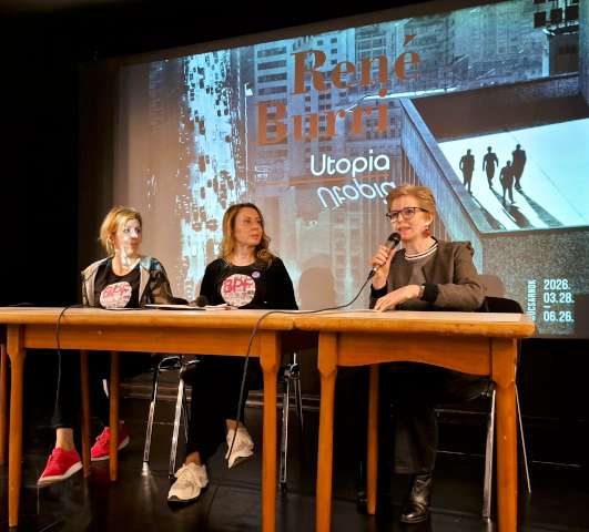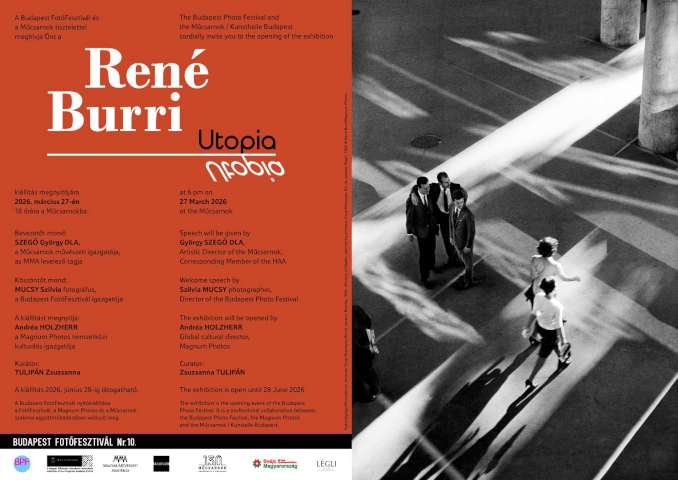 A szivarozó Che Guevara portréiról mindenki által ismert René Burri a nagy példányszámú képes magazinok korszakában vérbeli fotóriporterként tudósított a XX. század második felének legjelentősebb eseményeiről. 1955-ben csatlakozott a Magnum Fotóügynökséghez, 1959-ben vált teljes jogú taggá. Hat évtizedes karrierje során bejárta Európát, a Közel-Keletet, Észak-, Közép- és Dél-Amerikát, Japánt, Kínát. Ott volt Berlinben a fal leomlásánál, fényképezett Pekingben a Tienanmen téri diáktüntetésen, megörökítette a háború pusztítását Bejrútban. Az Utópia című kiállítás azonban új szemmel tekint Burri sokrétű alkotói életművére, ezúttal a század jelentős átalakulásai a modern építészet formanyelvén is kifejezésre jutnak. Ilyen értelemben e válogatás az építészet előtti tisztelgésként is felfogható: Burri egyéni szemléletű művészi felvételeken örökítette meg a modernizmus számos jelképpé vált épületét, Le Corbusier Ronchamp-i kápolnájától Oscar Niemeyer Rio de Janeiróba és Brazíliavárosba tervezett minisztériumi épületeiig. Képsorozatainak – más lapok mellett – a Paris Match is kiemelt teret biztosított, ahol művészportréi is megjelentek; ezek közül a kiállításon a modern építészet világhírű alkotói kerülnek a fókuszba. A tárlat közel száz felvételén megismerhető René Burri egyéni, expresszív dokumentarizmusa, s az emberi alkotás és rombolás képei egyfajta keserédes tüneményként tudósítanak az elmúlt század metamorfózisáról.