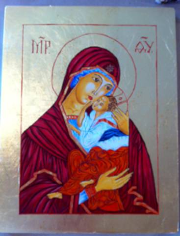 A most először kiállított ikonok által bepillanthatunk az Istenszülő, Krisztus király, szentjeink és angyalaink egyszerre zárt és nyitott, túlvilági és emberi világába. Az ikonok és aranygrafikák igazi varázslata, hogy együtt tárul elénk ezeknek az aranyba foglalt lelkeknek az esendősége és sziklaszilárd hite. Egy-egy műve legalább egy hónapig készül, de mint kérdésemre a sütizésen elmondta, párhuzamosan hármat-négyet is alkot egyszerre. Az elmúlt 9 hónapban ? polgármesteri munkája lezártával ? bőven volt ideje a művészi tevékenységre.