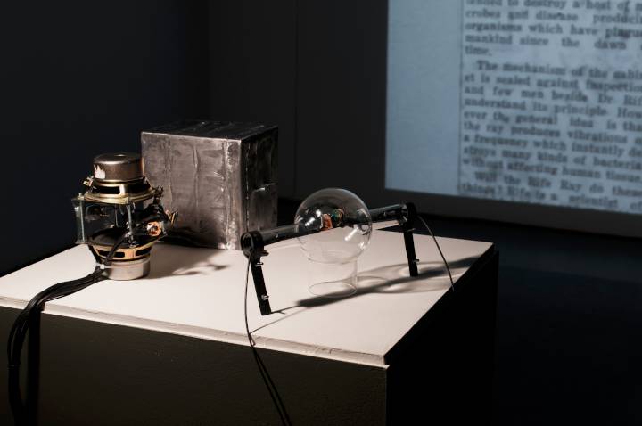 Amigzaj ? ötödik/verzió (A Rife-szerkezetek és frekvenciák története) című performanszt és előadást láttunk tegnap este 20 órától a május 20-án megnyitott Zichy Jenő utcai Horizont Galériában.