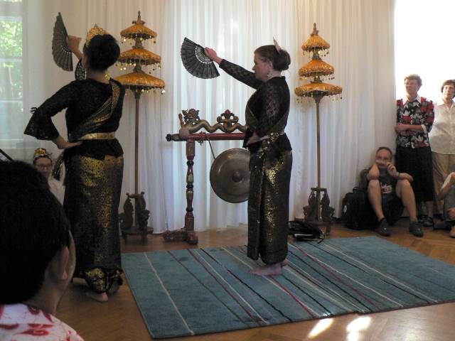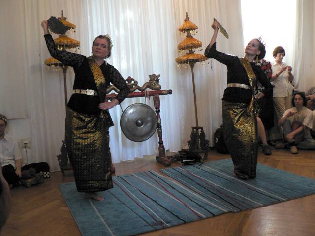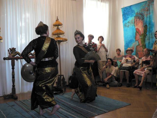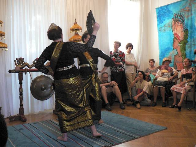 Az érdeklődők ízelítőt kaphattak az indonéz kulturális és kulináris értékekből: ételkóstoló a szigetország ízvilágából, tradicionális tánc- és zenei bemutató a Topong Bang jávai gamelán együttes és a Kupu-kupu gyerek tánccsoport jóvoltából. A Bali szigetről származó nyitótáncot Bárdos Yvette adta elő. Közreműködött: Térfy András gamelán rindiken. A kiállítást Wening Esthyprobo Fatandari, az Indonéz Köztársaság nagykövete nyitotta meg. A kiállításmegnyitó az Indonéz Nagykövetség támogatásával jött létre. Fotóink Rósa István felvételei.