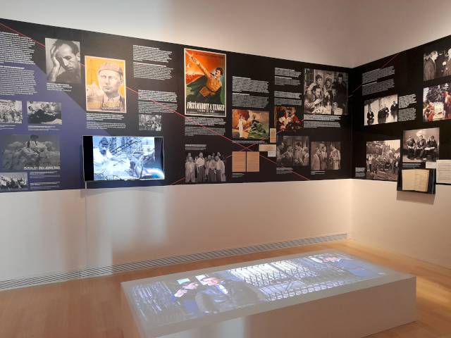 A II. világháborút követő időtől a rendszer-változtatásig tartó magyar filmtörténetet három részre (1945-1956; 1957-1968; 1969-1989) bontva mutatja be a tárlat, mindhármat egy-egy emblematikus alkotás fémjelez: Fábri Zoltán Körhinta, Jancsó Miklós Szegénylegények és Huszárik Zoltán Szindbád című alkotása. Külön terem taglalja a cenzúra történetét, a Balázs Béla Stúdió éveit, a filmgyártás folyamatát. A rendszerváltás óta eltelt három évtizedet bemutató terem nagy teret szentel az Oscar-díjas Saul fiának (a díj maga is megtekinthető), a Magyar Hollywood című terem kitér valamennyi magyar vonatkozású Oscarra, az utolsó falat pedig az archiválásnak, a filmművészet megőrzésének szentelik.