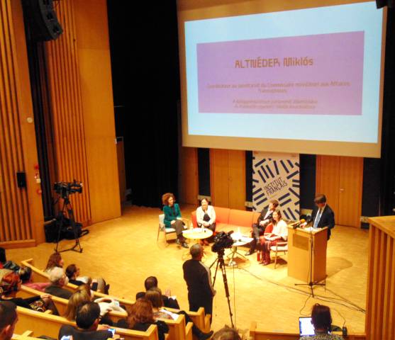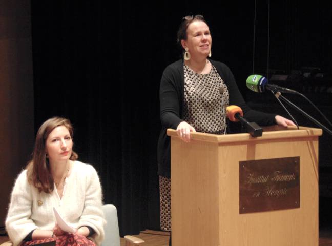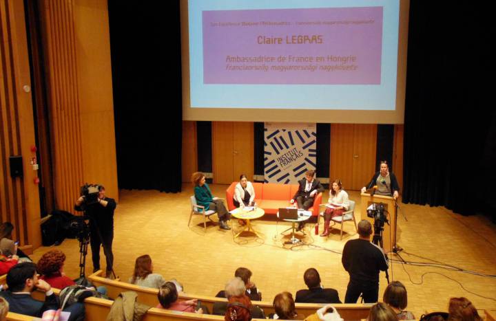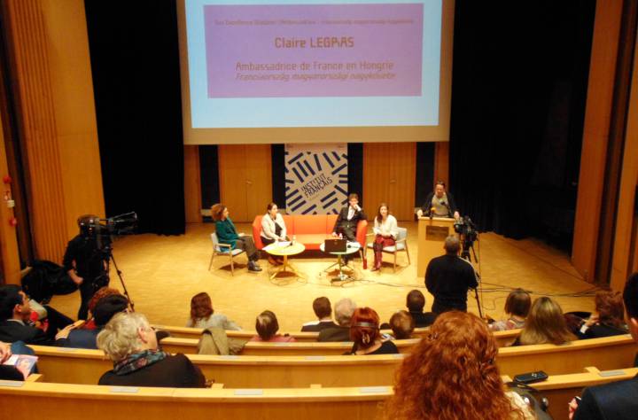 Az I. emeleti Auditóriumában megszólalt Claire Legras, Franciaország magyarországi nagykövet-asszonya, Altnéder Miklós, a Külgazdasági és Külügyminisztérium frankofón ügyekért felelős koordinátora és Pierre Pedico, a Magyarországi Francia Intézet igazgatója. Fotóink Egressy Rita felvételei.