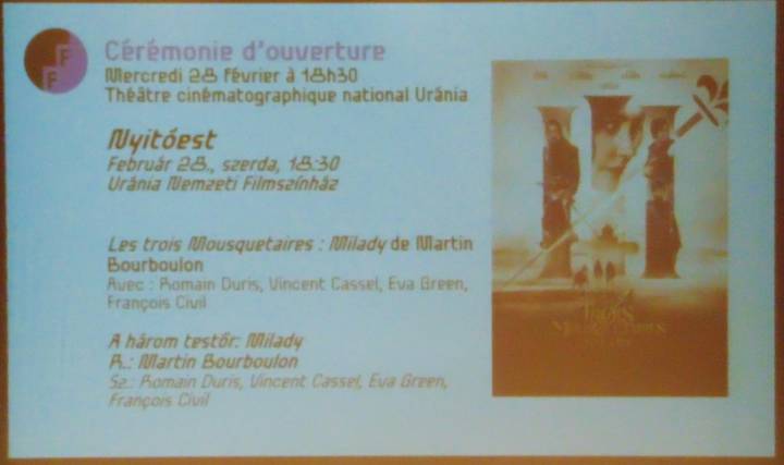 Február 28-án 18:30-kor a budapesti Uránia Nemzeti Filmszínházban a hat César-díjra jelölt A három testőr: Milady nyitja a 14. Frankofón Filmnapokat. A Dumas-regény legújabb filmes feldolgozásában olyan nagyszerű színészeket láthat a közönség, mint Romain Duris, Vincent Cassel, Eva Green és François Civil.