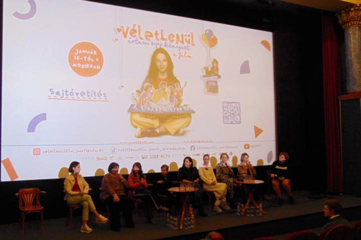 Lakos Nóra: Véletlenül írtam egy könyvet című családi filmje január 16-tól látható országszerte a mozikban – tudtuk meg ma a 10 órai sajtóvetítésen a belvárosi Puskin moziban. A 98 perces film bemutatója után az alkotókat kérdezgethettük. Fotóink Egressy Rita felvételei.