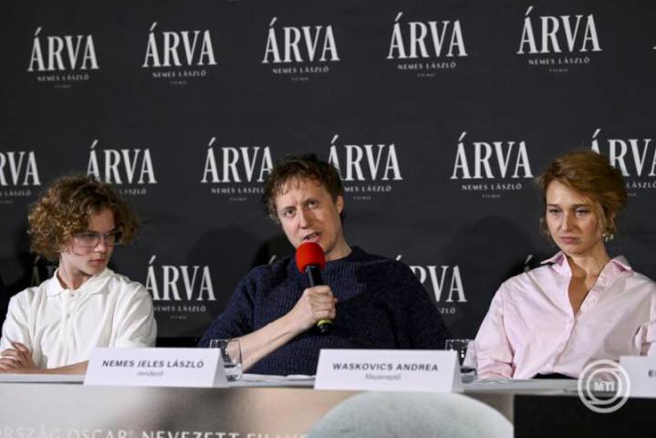 Október 23-án csütörtöktől vetítik a magyar mozik Nemes Jeles László Árva című új mozifilmjét, amely 1957-ben játszódik Budapesten és a rendező családtörténetét dolgozza fel – tudtuk meg a 12:30-as sajtóvetítést követő sajtótájékoztatón a Corvin Moziban. Fotóink MTI/Purger Tamás felvételei.