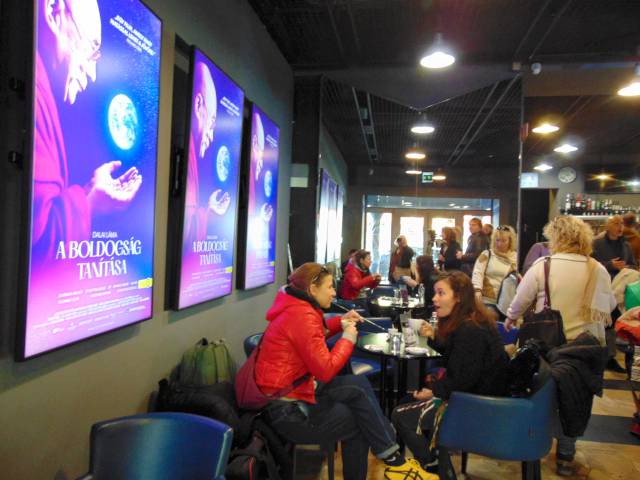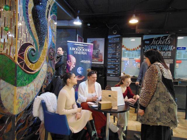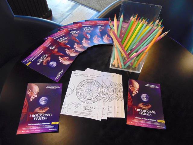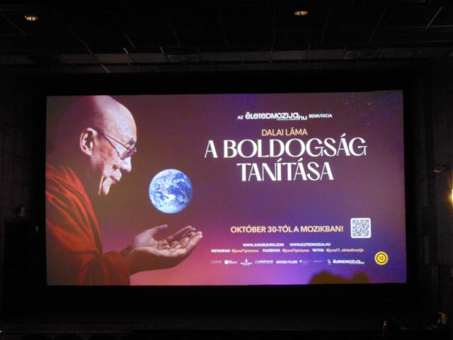 A Dalai Láma – A boldogság tanítása (Wisdom of Happiness) című 95 perces film sajtóvetítése az önfelett kávézás és pogizás után 10 órakor kezdődött ma a Teréz körúti Művész Moziban. Fotóink Egressy Rita felvételei.