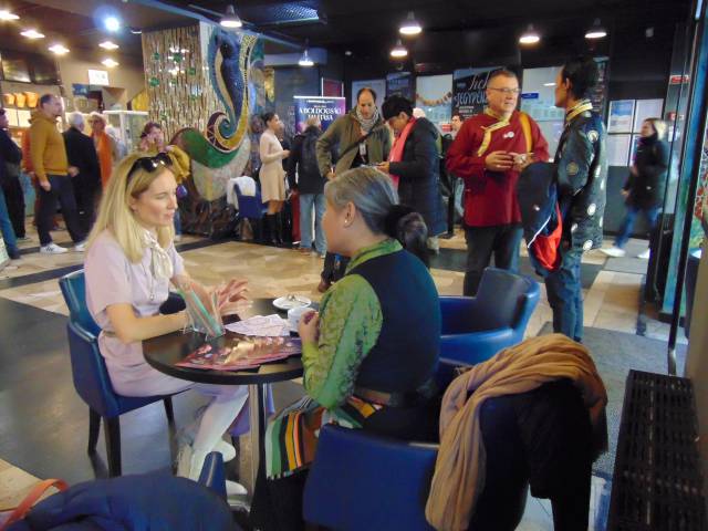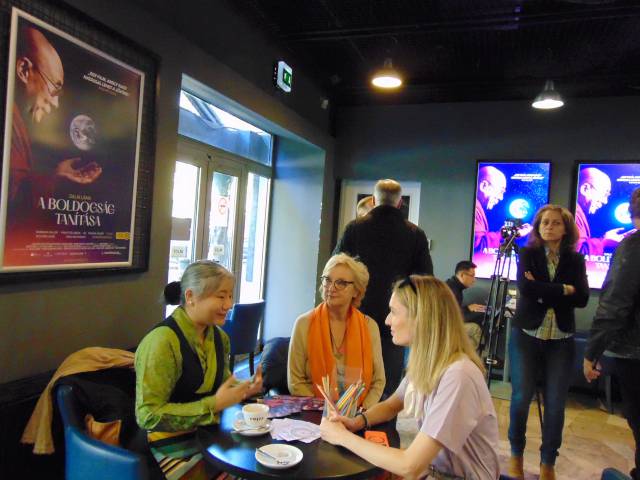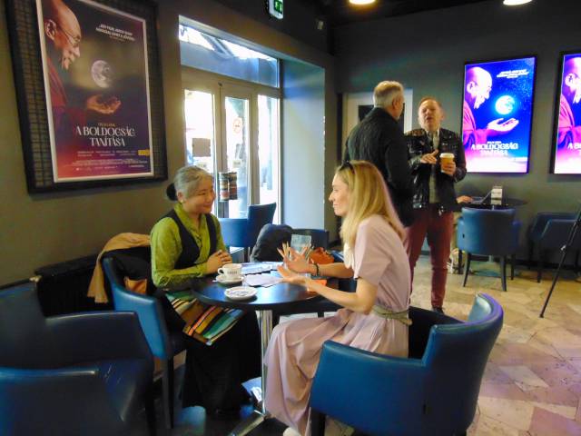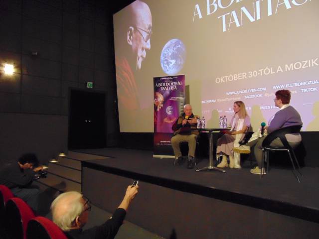 A filmet forgalmazó JUNO11 képviseletében Sümeghy Claudia, valamint Papp János – akinek tolmácsolásában magyarul hallhatjuk a Dalai Láma gondolatait – vett részt a mai programon. A vetítést követően online jelentkezett be Barbara Miller, a film író-rendezője és mindhármukat kérdezhettük az egyéni interjúk előtt.