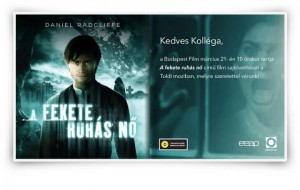 Arthur Kipps (Daniel Radcliffe) egy fiatal ügyvéd, akit egy távoli kis faluba küldenek, hogy rendezzen el egy hagyatéki ügyet ? láttuk délelőtt a Kerepesi úti Cinema City Aréna Plázában (s nem az eredetileg jelzett Toldi moziban), A fekete ruhás nő (The Woman in Black) című amerikai thrillerben.