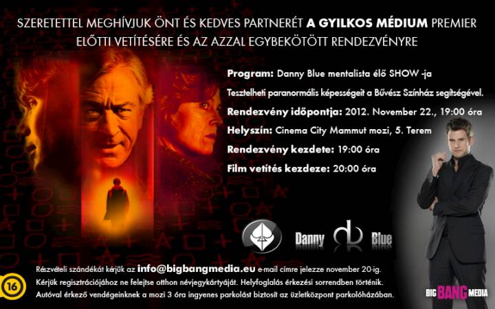 Főszereplők: Robert de Niro (Nagymenők, Taxisofőr, Casino), Sigourney Weaver (A bolygó neve: Halál, Avatar), Cillian Murphy (A sötét lovag, Eredet), Elizabeth Oisen (Martha Marcy May Marlene). Rendező: Rodrigo Cortés (Élve eltemetve). Gyártó: Nostromo Pictures. Magyar hang: 5.1 szinkron, magyar hangok: Reviczky Gábor, Menszátor Magdolna, Rajkai Zoltán, Földes Eszter. Magyarországi mozipremier november 29-én a Big Bang Media forgalmazásában csak 12 éven felülieknek.
