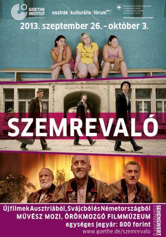 Szemrevaló 2013: új filmek Ausztriából, Svájcból és Németországból mától október 3-án, csütörtökig. Ma este 19 órakor a Művész moziban veszi kezdetét a Szemrevaló Filmfesztivál, amely idén ? immár másodjára ? az Osztrák Kulturális Fórum, a Svájci Nagykövetség és a Goethe Intézet közös szervezésében valósul meg.