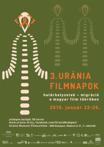 2015. január 22-e csütörtök és 25-e vasárnap között Határhelyzetek ? Migráció a magyar film tükrében címmel immár harmadszor jelentkezik az Uránia Nemzeti Filmszínház éves filmszemléje, az Uránia Filmnapok, amely a történeti és a kortárs magyar filmkincs újabb és újabb metszeteinek bemutatását tűzte ki céljául.