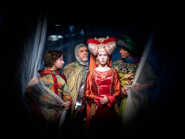 Szerelemre éhes, gyönyörű csitri ült a nápolyi trónon a XIV. században – láttuk tegnap 19 órától Andrási Attila: Anjou – A liliom útvesztői című kétórás, két felvonásos történelmi drámájában az Udvari Kamaraszínház (MKUK) Altemplomban, a XIII. kerületi Pozsonyi út 80-ban.