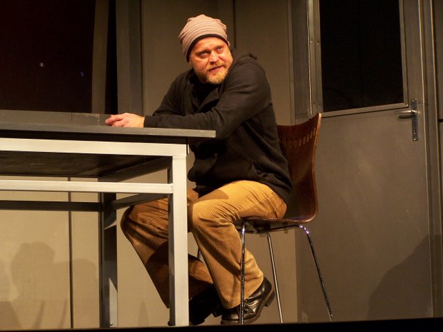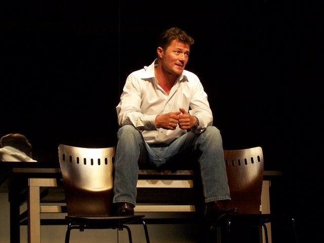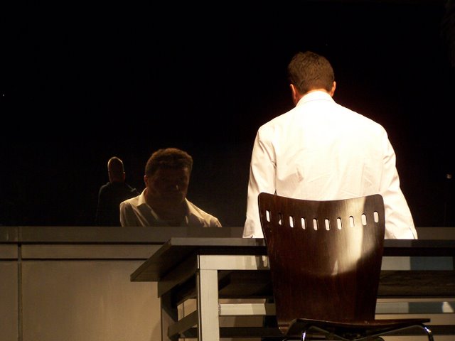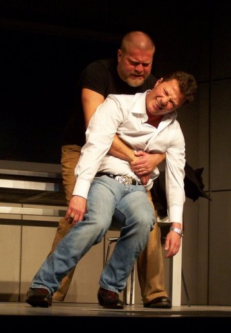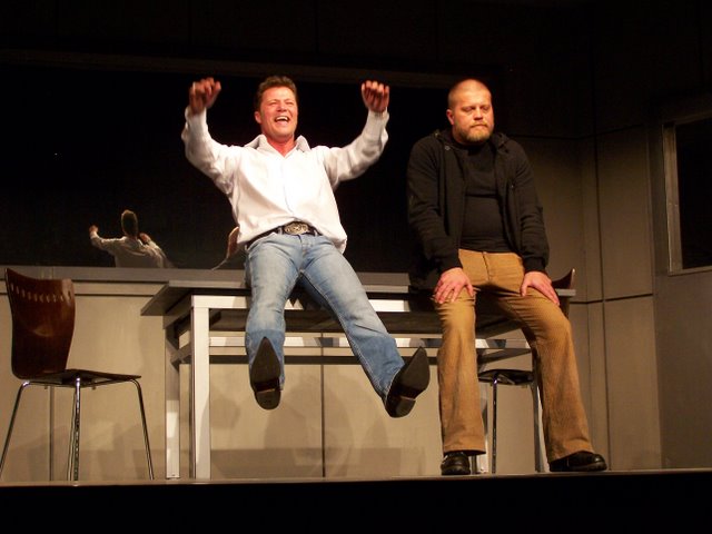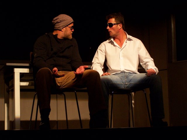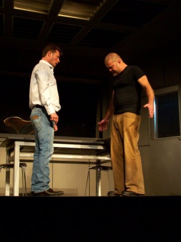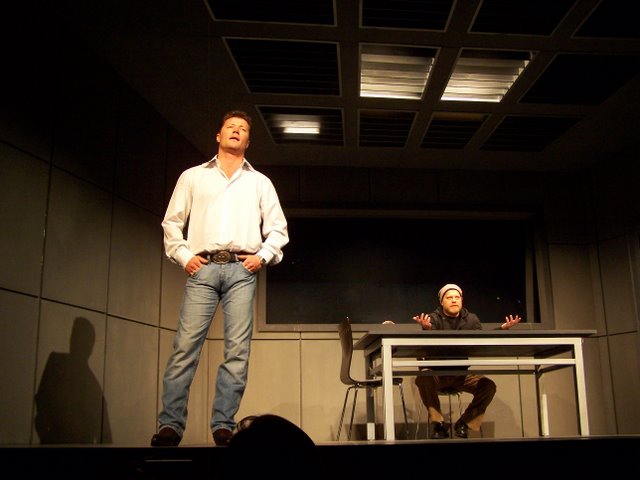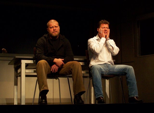 A fiatal szerző kétszereplős darabja egyszerre modern bűnbeesés-történet és könyörtelen bosszúdráma ? egyszerre mulattató és gondolatébresztő. A mű komor világa a film noir klasszikusait idézi meg. A darab eredeti címe (A Steady Rain) magyarul Konok eső, a magyar változatot a Révay utcai színházban Puskás Tamás rendezi. Fotóink Lantai József felvételei.