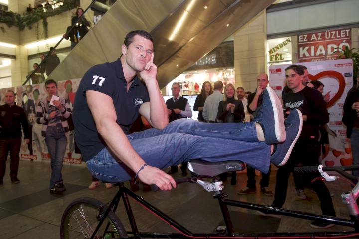 Árpa Attila feleségével, Tomán Szabinával, Lola kedvesével, Brasch Bencével, Dudás Miklós világklasszis kajakozónk szerelmével, valamint Szentgyörgyi Rómeó Pordán Petrával is nyeregbe pattant, hogy együtt, ám mégis versenyt tekerjenek a szerelemért Valentin-nap alkalmából. A WestEnd City Center egész héten át tartó programsorozatának záróakkordjára tegnap este nagy tömeg gyűlt össze az óriás, vöröslő szív körül. A sztárpárok döntőjét követően a civil szerelmesek tekerhették a tandemkerékpárokat, ezzel bizonyítva kitartásukat, na és persze fizikai erőnlétüket is. Izzadságcseppekben és füstölő pedálokban nem volt hiány. A biciklik előre ugyan nem haladtak, ám kilométeróráik vadul pörögtek.