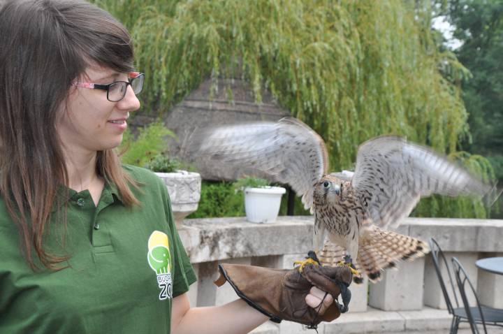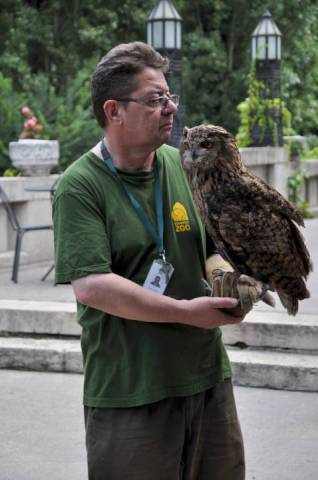 Megint Állatkertek Éjszakája lesz augusztus 30-án pénteken. Különleges esti programokra kerül sor országszere 12 állatkertben és vadasparkban ? tudtuk meg délelőtt a Pálmaház teraszán. Zita vörös vércsét, István Uhut, Zoltán egy erszényest tartott a karján-vállán. Végezetül a hangyászok látványetetésén is részt vehettünk. Fotóink Rósa István felvételei.