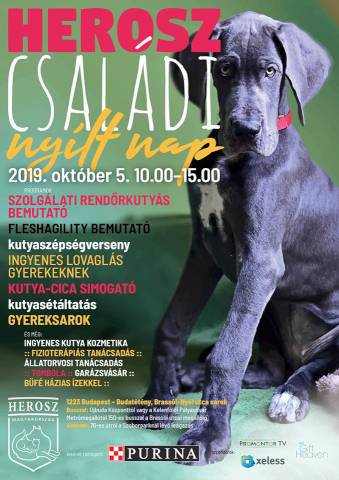 HEROSZ-plakát a Nyílt NaprólŐszi Nyílt Nap a HEROSZ Budapesti Állatotthonban. Október 5-én szombaton 10 és 15 óra között tárt kapukkal várnak minden két- és négylábú érdeklődőt, hogy az Állatok Világnapja alkalmából idén is bárki megismerkedhessen az gazdira váró védencekkel és az állatotthon munkatársainak felelősségteljes munkájával ? tudatták sajtósaik.