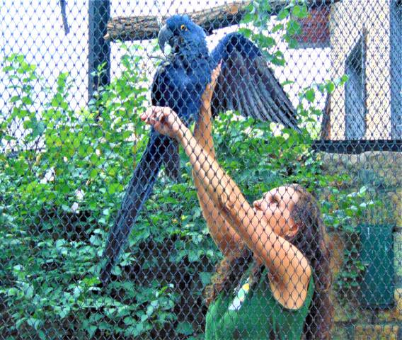 A Fővárosi Állat- és Növénykert az Állatkerti Alapítvánnyal közös sajtótájékoztatón mutatta be a Virághné Szamosi Judit végrendeletében az Állatkerti Alapítványra hagyott támogatásból megújult jácintkék ara röpdét ma délelőtt a Xántus János-ház melletti Fácánterasznál. Fotóink Egressy Rita felvételei.