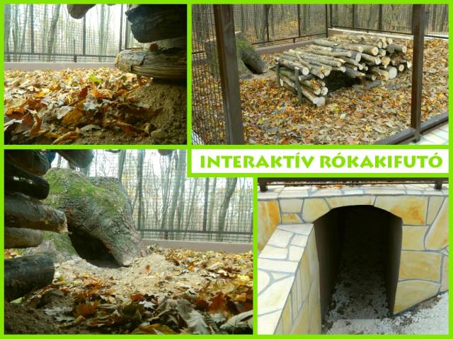 A földalatti kotorék átlátszó falához egy olyan speciálisan kiépített 110 centiméter ?alacsony? lejáró vezet, ahová bebújva bárki megnézheti a rókák világát. A lejárat vége egy átlátszó plexi kupolában csúcsosodik ki, ahonnan a kifutó föld feletti részét vehettük szemügyre, bekukucskálhattunk egy róka mindennapjaiba. A szűk alagútba a gyerekek és a klausztrofóbiások csak felnőtt kísérővel menjenek!