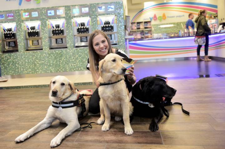 Vakvezető kutyák vendégeskedtek a plazában. A kutyabarát Allee-nek is dicsőségére vált az a bűbájos kutyacsapat, amely ma délután gyülekezett a bevásárlóközpont I. emeletén. Születésnapi összejövetelt tartott ugyanis a Baráthegyi Vakvezető Kutya Iskola, hiszen idén ünneplik fennállásuk 10. évfordulóját.