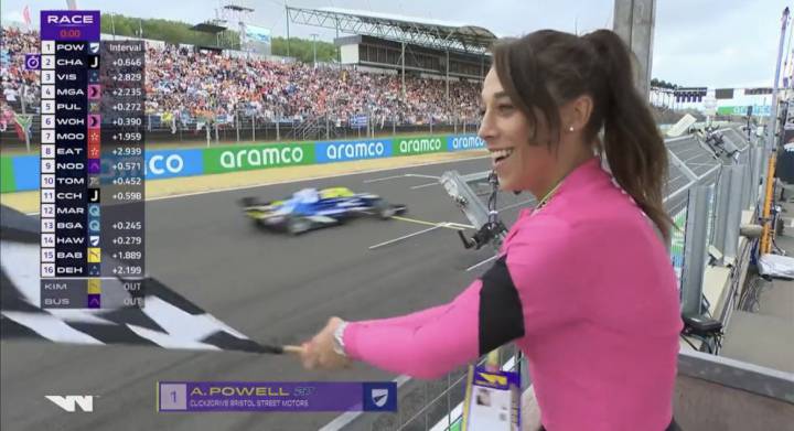 Nem ez volt az egyetlen komolyabb kontakt a versenyzőnők között: a már büntetett Jessica Hawkins Emma Kimilainennel ütközött, de az eset után mindketten folytatni tudták a száguldást. Ezután nem sokkal Bianca Bustamante a falba állása után be kellett hívni a biztonsági autót, ami miatt elveszett Powell addigi előnye Chadwickkel szemben, akinek az 5. helyről rajtolva kellett felzárkóznia honfitársa mögé. A brit hölgy először Marta Garciát, majd Beitke Vissert utasította maga mögé. Az SC fázist követően már csak 4 körre elegendő ideje maradt a mezőnynek és Chadwick ebben az intervallumban már nem tudott támadást indítani Powell-lel szemben, aki ezzel megszerezte idei első sikerét a sorozatban. Chadwick a 2. helyével még tovább tudta növelni az előnyét az egyéniben, ugyanis a közvetlen riválisa, Visser a 3. helyen ért célba.
