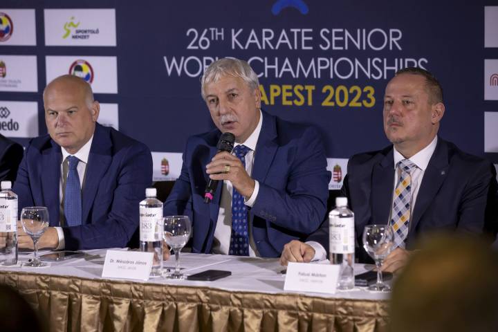 Rekordlétszámmal startol 24-én kedden a budapesti karate vb. Október 24-e és 29-e között a Papp László Sportarénában rendezik a 26. Karate Világbajnokságot. A kiemelt hazai rendezésű világverseny több különlegességgel bír – tudtuk meg délelőtt a Cházár András utcai Lion’s Garden Hotelben. Fotóink Jani Martin felvételei.