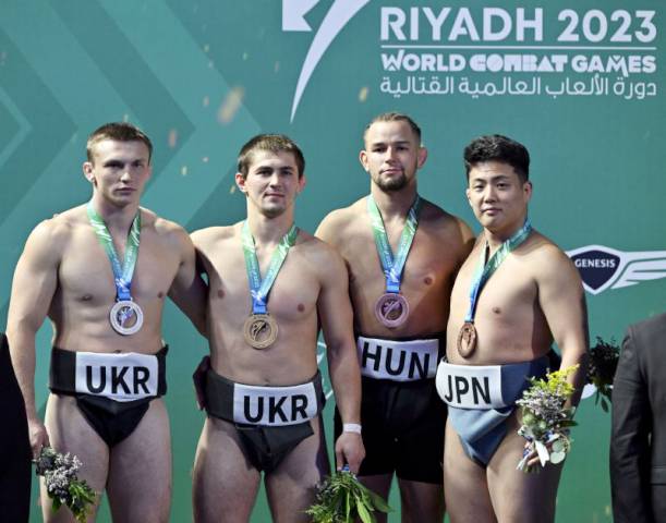 Megvan az első magyar érem a Küzdősportok Világjátékán. A szaúd-arábiai Rijádban zajló multisport versenyen a szumós Buzás Patrik bronzérmes lett a 85 kilogrammosok között. Pap Arnold a nehézsúlyúaknál a hetedik helyet szerezte meg – tudatta a Nemzeti Versenysport Szövetség. Fotóink Szalmás Péter felvételei.
