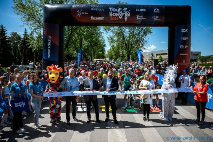 A 183 kilométeres királyetap rajtjánál Szitka Péter, Kazincbarcika polgármestere és a szakasz védnöke; dr. Makkai Orsolya és Klimon István, Kazincbarcika alpolgármesterei; illetve Eisenkrammer Károly főszervező vágták át a rajtszalagot.