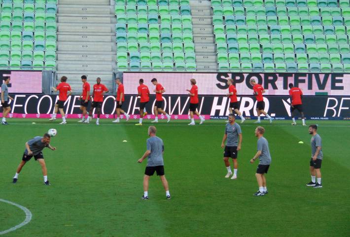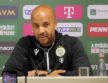 A Fradi vezetőedzője szerint elsősorban a helyzetkihasználáson kell javítania csapatának ahhoz, hogy a holnap esti hazai visszavágón kétgólos hátrányból megfordítsa a Midtjylland elleni párharcot a BL-selejtező 3. fordulójában – tudtuk meg a 17 órai edzést megelőző 16:30-as sajtótájékoztatón. Fotóink Egressy Rita felvételei.