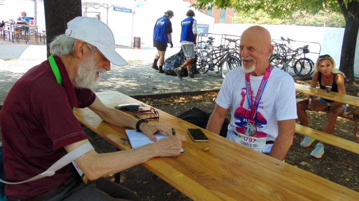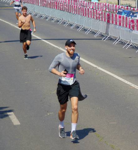 Különleges figurák is színesítették a mezőnyt, például egy ikerpár úgy döntött, hogy a hőség ellenére öltönyben és nyakkendőben futja le a 21,1 kilométert, és olyan sportos apuka is indult, aki iker babakocsit tolva gyermekeivel vett részt a versenyen. A legidősebb futó a félmaratoni távon a 80 éves csongrádi Kis Ferenc volt, aki ráadásul a mezőny nagy részét maga mögé utasította. Feri bácsi kérdésemre elmondta, hogy edzésként hetente többször félmaratont fut a gáton és a november 03-ai New York-i félmaratonon is rajthoz áll. Oda 150 ezer jelentkezőből 51 ezer futót választottak. Két hetet tölt majd az Államokban, hogy kellőképp akklimatizálódhasson és a várost is megismerje. 13-13 órát repül majd egyszeri átszállással az oda- és a visszaúton.
