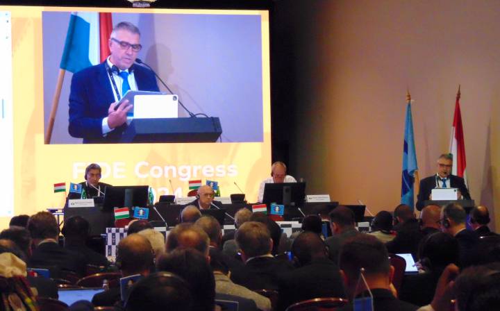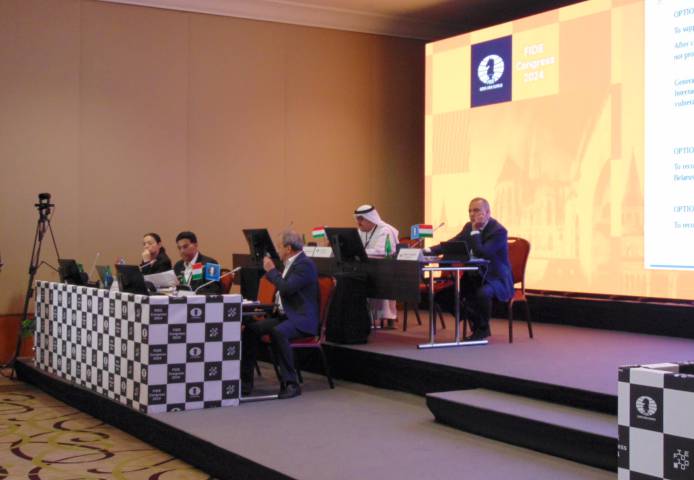 Amíg a világ sakkikonjai szeptember 11-től 22-ig a BOK Sportcsarnokban a 45. Sakkolimpián mérkőztek a csapatgyőzelemért, a FIDE a napok óta áradó Duna partján, a belvárosi Hotel InterContinental emeletén tartotta 18-tól 22-ig az ötnapos konferenciát.