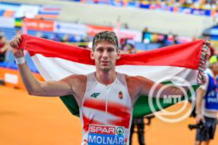 A ferencvárosi Molnár Attila rajt-cél győzelemmel aranyérmes 400 méteren: fantasztikus futással, 45.25 másodperces eredménnyel nyert tegnap az apeldoorni fedett-pályás atlétikai Európa-bajnokságon, ezzel sportág 17. magyar aranyát nyerte tető alatti Eb-n. Fotónk MTI/Illyés Tibor felvétele.