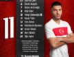 Törökország: Cakir – Elmali, Bardakci, Akaydin, Müldür – Yüksek (Özcan, a szünetben), Calhanoglu – Aydin (Gül, 71.), Güler (Kahveci, 64.), Yildiz (Akcicek, 82.) – Aktürkoglu (Yilmaz, 64.)