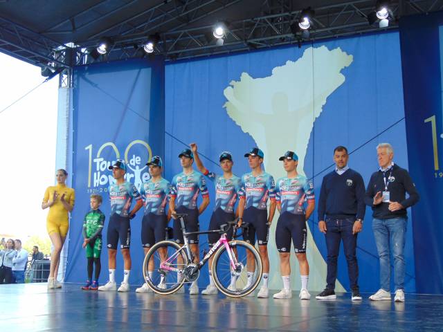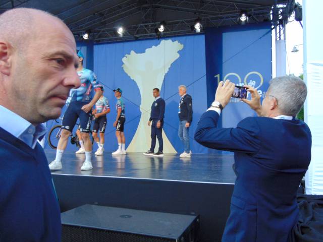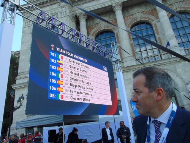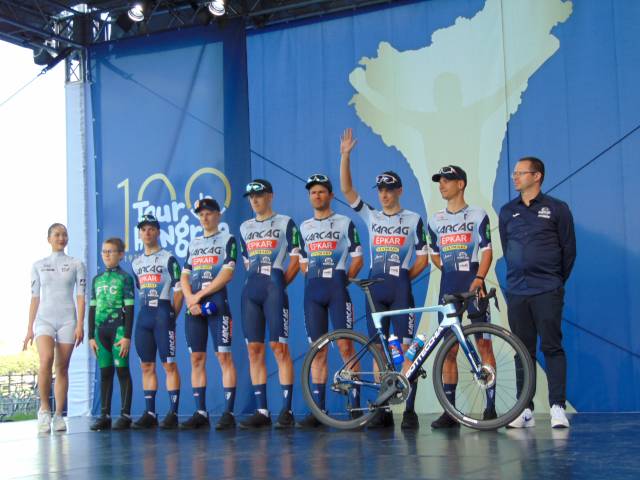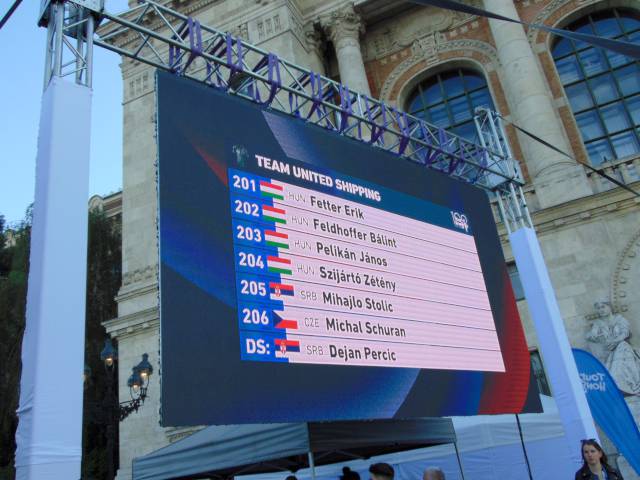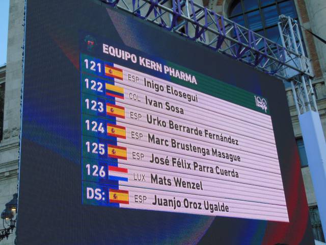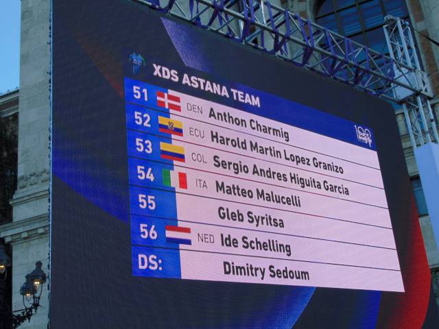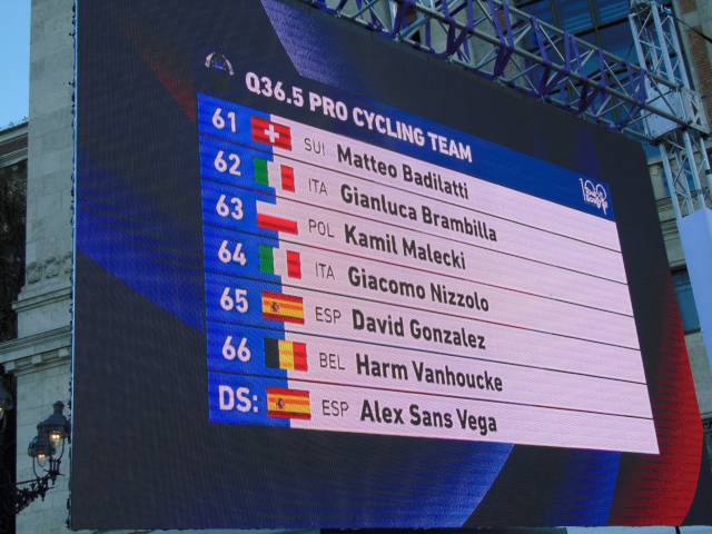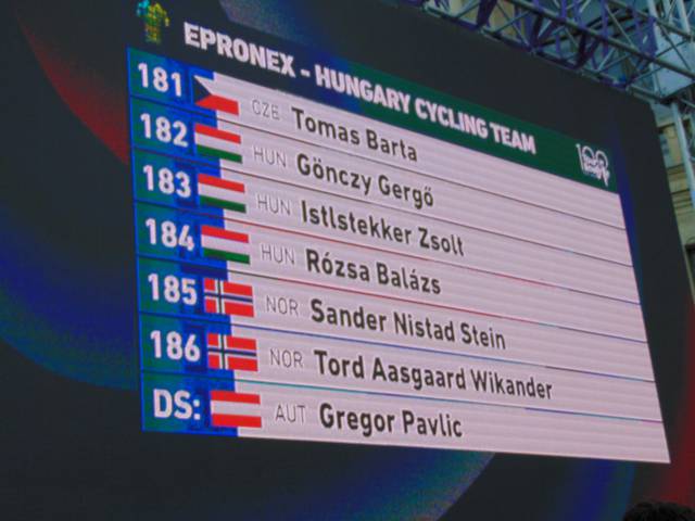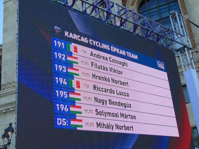 18 órától már a csapatoké volt a főszerep. Székely Dávid, a csapatbemutató házigazdája előbb Eisenkrammer Károlyt, a verseny főszervezőjét köszöntötte, majd színpadra szólította a 21 profi csapat 126 versenyzőjét, köztük 15 honfitársunkat. A mezőnyben összesen 6 WorldTeam, 9 ProTeam, 5 Continental Team és egy Cyclo-Cross ProTeam kapott helyet, akik az M4 Sport élő adásában mutatkoztak be a nagyérdeműnek. A műsort a Vuelta SE Passion Tánccsoportjának produkciója, illetve a megkülönböztető mezek és a hivatalos trófea bemutatása színesítette.