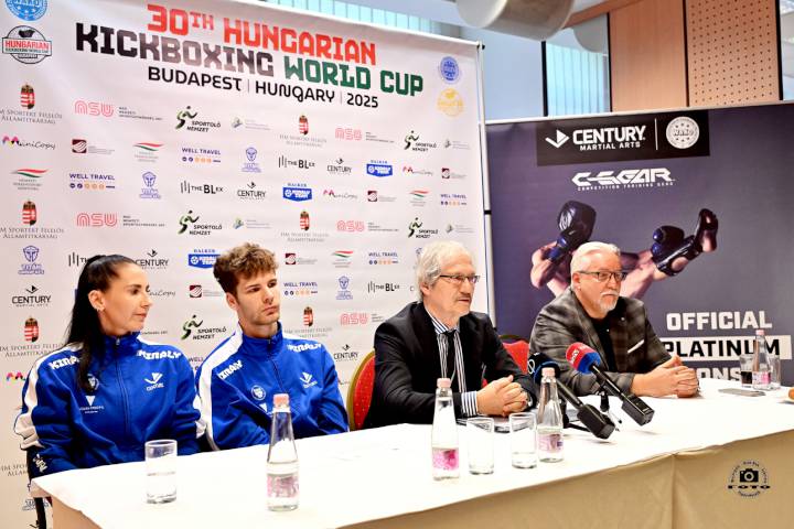 A hazai kick-box másik nagy büszkesége, hogy hat versenyzőnk is részvételi jogot szereztek az augusztus 07-17-ei Világjátékokra. Felkészülési állomásként a kvótások közül többen is elindulnak a világkupán, és valamennyien éremért utaznak ki majd a kínai Csengtuba – hallottuk a Benczúr Hotelben a sajtóebéd előtti MKBSZ sajtótájékoztatón. Fotóink Tóth Péter/Sportfotóth felvételei.