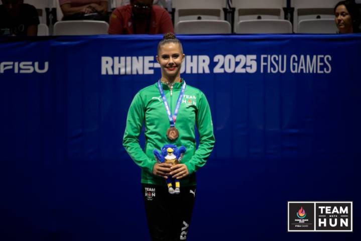Hat éremnél tart a magyar küldöttség az Egyetemi Világjátékokon. A Rajna-Ruhr Régió hat városában zajló multisport-esemény 3. versenynapján a kardvívó Spiesz Anni (Semmelweis Egyetem) ezüst-, míg a ritmikus gimnasztikás Pigniczki Fanni (Károli Gáspár Református Egyetem) bronzérmet nyert karikával.