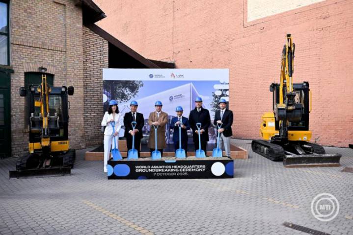 Ünnepélyes keretek között letették a vizes sportokat tömörítő nemzetközi szövetség, a World Aquatics (WA) budapesti székházának alapkövét. Fotóink MTI/Illyés Tibor felvételei.