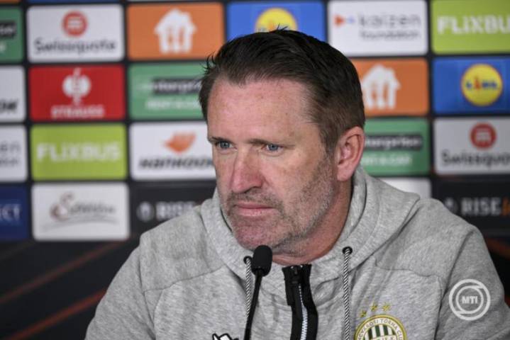 A Fradi 45 éves ír vezetőedzője szerint a csapatnak folytatnia kell a lendületes szereplést a labdarúgó Európa-liga alapszakaszának csütörtök esti salzburgi vendégjátékán – derült ki a híradásokból. Sajnos a csapatot szállító repülőgép egyórás késéssel indult, ezért a sajtótájékoztató is ugyanennyit csúszott. Fotóink MTI/Szigetváry Zsolt felvételei.
