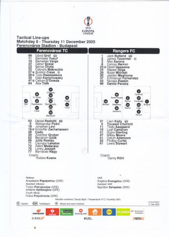 FTC-RFC 2:1 (1:1), Üllői út, 19.567 néző, vezette: Anasztasziosz Papapetru (görög). Gólok: Ötvös (45+5.), Varga B. (73.), illetve Miovski (27.). Sárga lapok: Joseph (77.), illetve Aarons (43.), Djiga (79.). FTC: Gróf – Cissé, Raemaekers, Szalai G. – Makreckis, Tóth A., Kanichowsky (Julio Romao, 83.), Ötvös (Zachariassen, 74.), O’Dowda (Cadu, 83.) – Yusuf (Joseph, 74.), Varga B. (Pesic, 90.). RFC: Butland – Tavernier (Aasgaard, 74.), Fernandez, Djiga, Aarons (Sterling, 58.) – Barron, Raskin – D. Pereira (Curtis, 67.), Meghoma, Gassama (Moore, 59.) – Miovski (Chermiti, 67.).