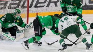 Mindkét csapat kihagyott egy-egy emberelőnyt, majd a 15. percben a vendégek Mahkovec révén megszerezték a vezetést, ám a következő percben Coulter egyenlített, A II. harmadban a szlovénok játszottak fölényben. A 25. percben Pance, a 39.-ben pedig Brennon is betalált az egyébként jól védó Bálizs Bence kapujába: 1:3. A záró játékrészben hullámzó játékok láttunk. A Fradi a 47. percben Kastila góljával visszahozta a reményt, majd az 59.-ben Antonen egyenlített. A dráma ezután következett: a ljubljanai Brennon 4 másodperccel a vége előtt betalált. Kikaptunk…