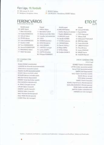 FTC: Gróf – Cissé, Raemaekers, Szalai (Gruber, 78.) – Makreckis, Ötvös, Madarász, Kanikovszki (Abu Fani, 78.), Nagy B. – Acolatse (Yusuf, 62.), Kovacevic (Joseph, 87.) vezetőedző: Robbie Keane. Győr: Megyeri – Vladoiu (Tóth R., 57.), Krpics, Csinger (Boldor, a szünetben), Stefulj – Vitális, Vingler, Gavrics (Bánáti 83.), Bumba (Huszár, 90.), Schön (Njie, 57.) – Benbouali, vezetőedző: Borbély Balázs. Sárga lapok: Ötvös (88.), illetve Schön (33.), Vitális (40.) és Krpics (69.), gólok: Kovacevic (49.), illetve Benbouali (61.), Bumba (72.) és Stefulj (86.).