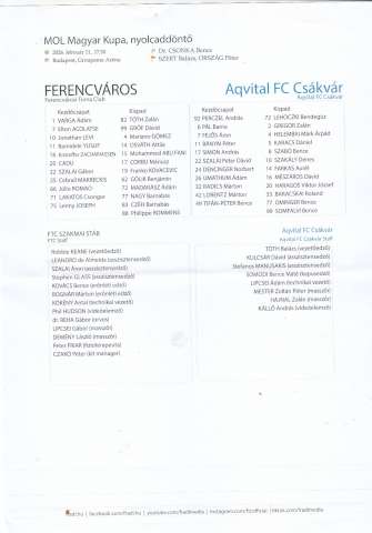 FTC-Csákvár 4:0 (4:0), Üllői út, 5164 néző. Vezette: dr. Csonka Bence (Szert Balázs, Ország Péter).Gólok: Joseph (11., 15.), Zachariassen (18.), Cadu (40.) Sárga lap: Radics (59.). FTC: Varga Á. – Makreckis, Lakatos, Szalai G. (Madarász, 62.), Cadu – Zachariassen (Rommens, 62.), Júlio Romao – Yusuf, Levi (Czéh, 77.), Acolatse (Corbu, 62.) – Joseph (Gólik, 62.). Vezetőedző: Robbie Keane. Csákvár: Perczel – Szalai P. (Haragos, 46.), Pál, Umathum, Lorentz – Fejős (Szabó B., 46.), Dencinger, Radics (Szakály, 83.), Tifán-Péter – Simon A. (Somfalvi, 46.), Bányai (Baracskai, 71.). Vezetőedző: Tóth Balázs. Az NB I 21. fordulóban vasárnap élre állt Fradi a március 04-ei negyeddöntőben a Kazincbarcika vendége lesz.