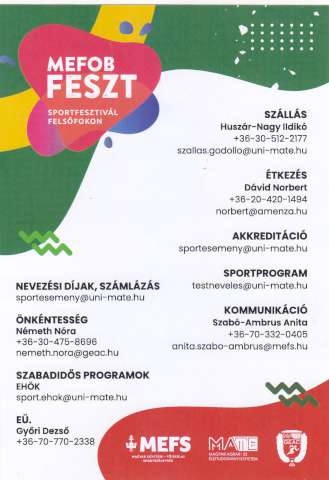 A MEFOB FESZT létszámát tekintve a legnagyobb hazai multisport esemény, melyet immár 5. alkalommal rendez meg a MEFS. Idén az esemény házigazdája a MATE. A rendezvény négy napján mától május 03-án vasárnapig közel 2000 sportoló, összesen 13 sportágban versenyezve méretteti meg magát az egyetemi bajnoki címekért. Az esemény célja, hogy felhívják a figyelmet az egyetemista korosztály számára a rendszeres sport fontosságára és közösségformáló erejére. A rendezvény fesztivál jellegét a napközbeni szabadidősportos programok mellett az esti zenés buli adja.