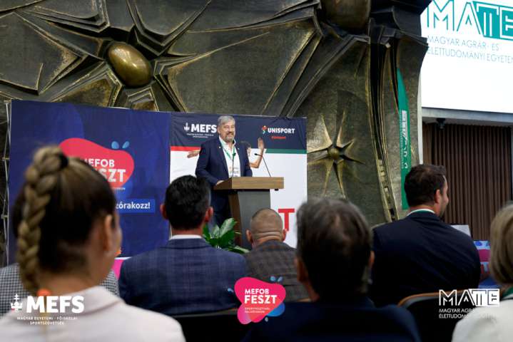 – Amikor létrejött a Magyar Agrár- és Élettudományi Egyetem gödöllői központtal, akkor kiemelt célunk volt, hogy olyan nagy volumenű sportfejlesztéseket hozzunk létre, amely elszánt, ambiciózus fiatalok közreműködésével egy erős intézményrendszerben működik. A sportfejlesztések az uszoda átadásával kezdődtek, majd a sportcsarnok felújításával folytatódnak, de tervben van egy atlétikai pálya és egy labdarúgópálya kialakítása is. Célunk, hogy ezen helyszínek megvalósulásával a magyar vidék legjelentősebb sportinfrastruktúrájával és sportolói hálózattal rendelkező egyetemévé váljunk. Nem vagyunk sportegyetem, de sportoló Egyetem vagyunk! Egy olyan Egyetem, amely foglalkozik a fiatalok testi, fizikai és mentális egészségével. Kiemelném, hogy csak egészséges fizikummal, illetve az erre való törekvéssel lehet egészséges élelmiszereket előállítani, és a MATE ezen a ponton is kapcsolódik ehhez a rendezvényhez – emelte ki a rendezvény kapcsán dr. Gyuricza Csaba, a MATE rektora.