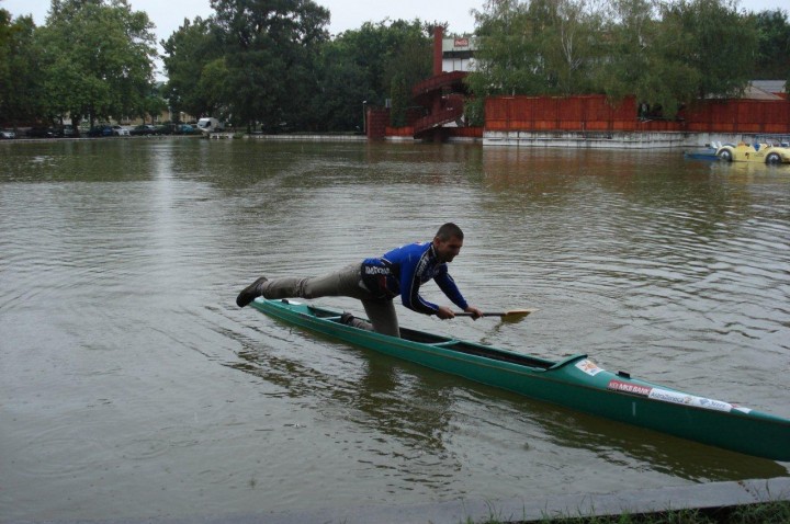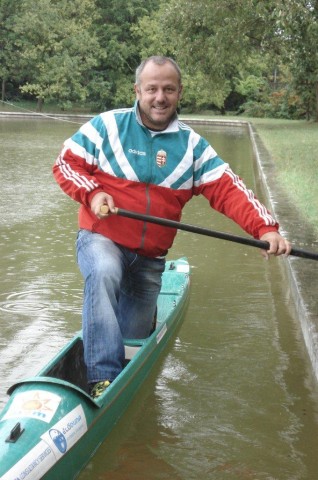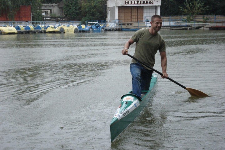 A Debreceni Nagy Sportágválasztó tegnapi sajtótájékoztatója után a szervezők kis kenuzásra invitálták a sajtó képviselőit. Záporozott az eső, de ez sem szabott gátat a bemutatónak, hiszen kajak-kenu amúgy is vizes sport! Ilyet nemigen láttak még a Debrecenben és környékén élő emberek. Olimpiai és többszörös világbajnokok próbálgatták a kenuzást ezen az aprócska tavon, Kolonics Gyuri egykori kenujában. Elsőként Horváth Csaba térdelt be. Ő Atlantában nyert aranyat Kolóval. Másodiknak következett Kozmann György, Peking bronzérmese, majd Csabai Edvin, a 17-szeres maratoni kenu világbajnok.