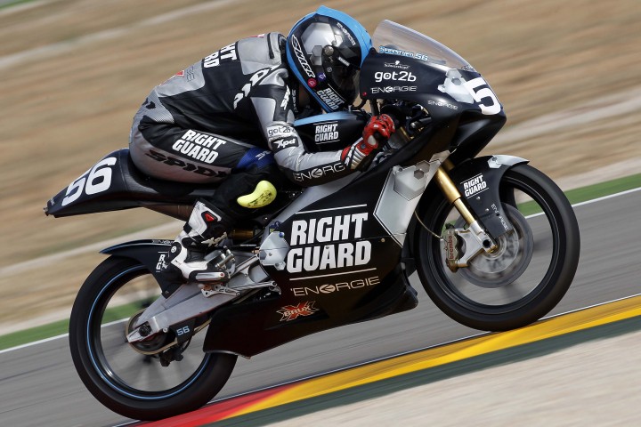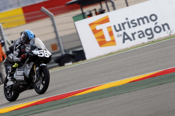 A spanyol nyár a péntekről szombatra virradó éjszaka leforgása alatt hűvös, szeles ősszé változott, ami a reggel 9:10-kor kezdő Moto2-es mezőny számára kissé talán váratlan is volt. Kabátban és garbóban ültek az emberek a boxban, de a versenyzők fittyet hánytak arra, hogy csak 15 fok van, mindenki a leggyorsabb körre és az ideális beállítások megtalálására törekedett.
