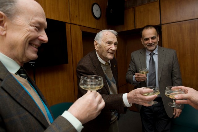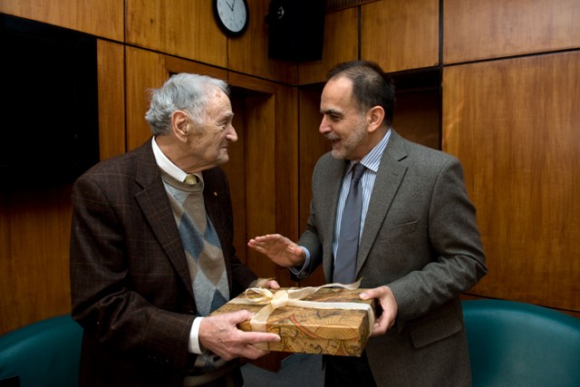 Jónás István, a Magyar Rádió Nonprofit Zrt. vezérigazgatója bensőséges ünnepség keretében köszöntötte délelőtt Szepesi Györgyöt, a 90 éves legendás sportriportert ? tudatta az MTVA Kommunikáció. Fotóink Kollányi Péter (MTI) felvételei.