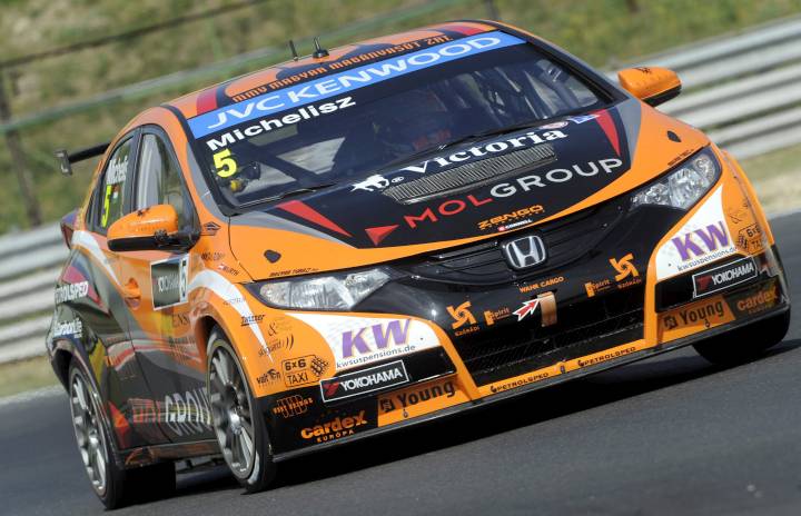 Norbi az élenMichelisz Norbert a 2. helyen ért célba a túraautó-világbajnokság (WTCC) magyarországi fordulójának vasárnapi első futamán a Hungaroringen. Az 1. futam végeredménye: 1. Yvan Muller (francia, Chevrolet Cruze) 23:17.125 perc (12 kör), 2. MICHELISZ NORBERT (Honda Civic) 0.617 másodperc hátrány, 3. Gabriele Tarquini (Honda Civic) 12.670 mp hátrány.