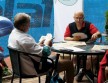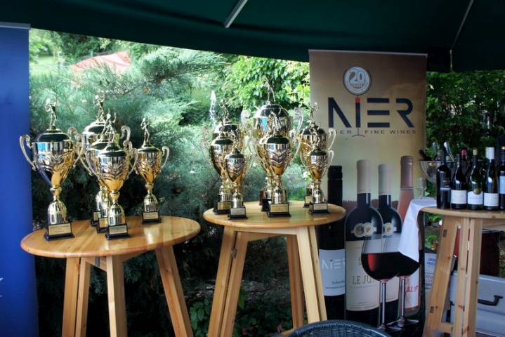 Délben gulyásleves és túrós csusza volt a menü az I. emeleten, pogácsa viszont már reggeltől volt a pálya szélén. A mérkőzések előtt és között bort, sört, pálinkát is kóstolhattunk. A borokat Schiller Gergely és Toldi Zoltán, a Nier Fine Wines két munkatársa töltögette poharainkba. Közben tippelhettünk is: azt kellett kitalálnunk a Nier Dugótotón, hogy hány dugó van a befőttesüvegben. (Jómagam 2014-et, az idei évszámot írtam, míg Karsai István 1953-ra, születésünk évszámára tippelt.) A szelvény szerint a nyertesek között egy 2 fős wellness hétvégét sorsolnak ki a balatonfüredi Hotel Flamingóba, valamint tízszer egy karton (12 palack) História-bort és száz darab hat fős élményborkóstolóra szóló ajándékutalványt. Mivel nem voltunk ennyien, s tippjeink is erősen megoszlottak, a versenykiírás bizonyára egy sokrendezvényes tippsorozatra vonatkozhatott.